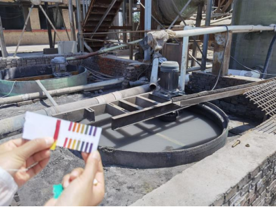 圖10 山西博天耐火材料有限公司煅燒回轉(zhuǎn)爐脫硫漿液循環(huán)池內(nèi)的脫硫漿液呈強(qiáng)酸性